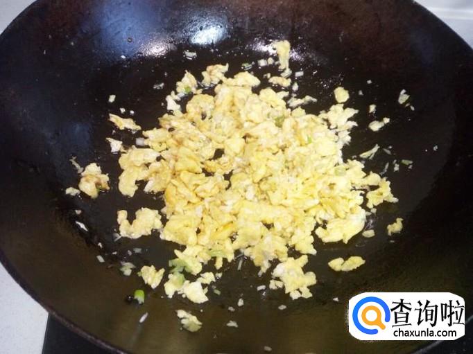 先用锅把鸡蛋炒出来,炒成稍碎一些的块,盛出备用。