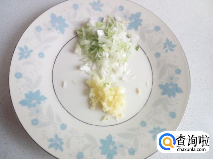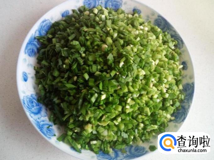 韭菜收拾清洗干净,控干水分,切成末。葱,姜,切成末,备用。