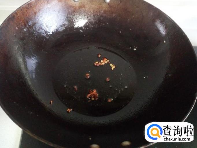 锅里放入油加热(油不要过多,否则韭菜容易下汤)加热,油热后放入花椒,八角,爆出香味,然后关火,把油晾凉,捞出花椒,八角,扔掉。