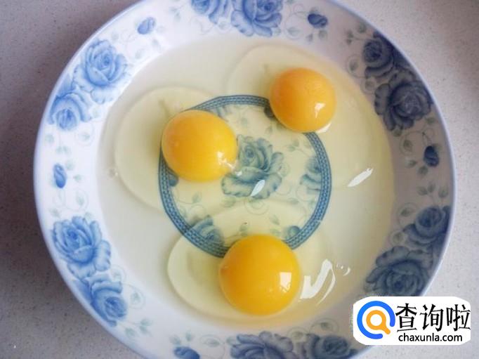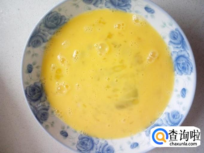 鸡蛋打入盘中,搅拌成鸡蛋液。