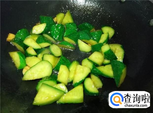 (炒黄瓜不需要放太多油哦,因为吃黄瓜本来就是解油腻的。)