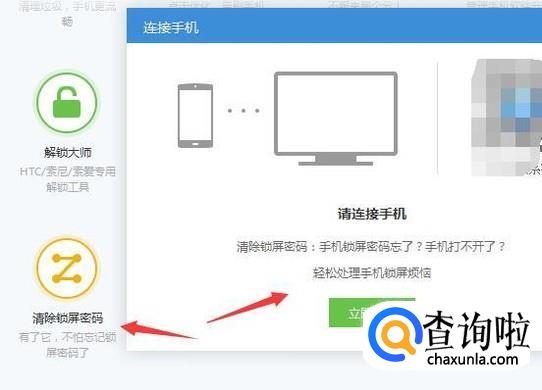 我们点击“清除锁屏密码”这个功能后就会直接运行处理,这里因为手机没能正常连上,所以会出现这样的提示,大家要先成功连接上才行哦。