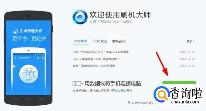 安装完毕后运行刷机大师,我们需要先将手机跟电脑相互连接。