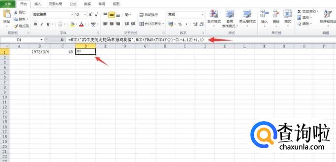如果还想要添加生肖的话就还需要另外一个公式=MID("鼠牛虎兔龙蛇马羊猴鸡狗猪",MOD(YEAR(TODAY())-C1-4,12)+1,1),这个公式很长,但是其作用其实精通计算机的朋友们应该不难理解,就是根据年龄所在的方格C1来计算出所属的生肖。