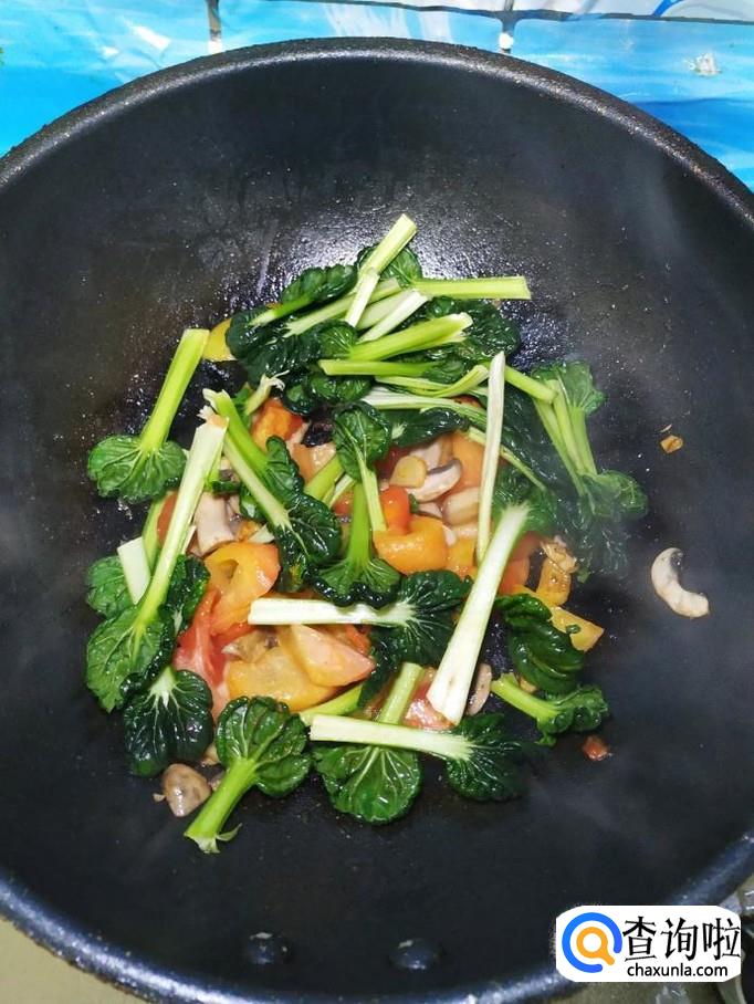 准备适量塔菜,洗净后,倒入锅中翻炒一下。