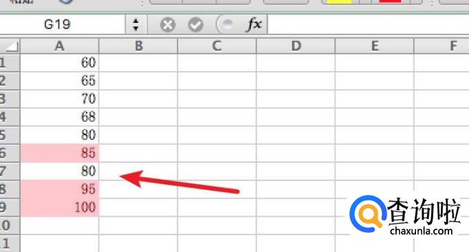 这样我们就找出了所有大于80的数据了,以红色的背景色显示出来了。