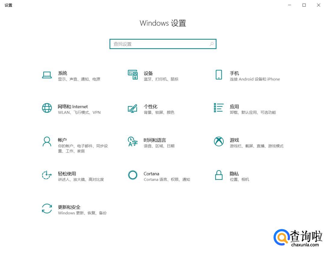 在开始菜单中,点击【设置】按钮,将控制面板打开,如图所示。