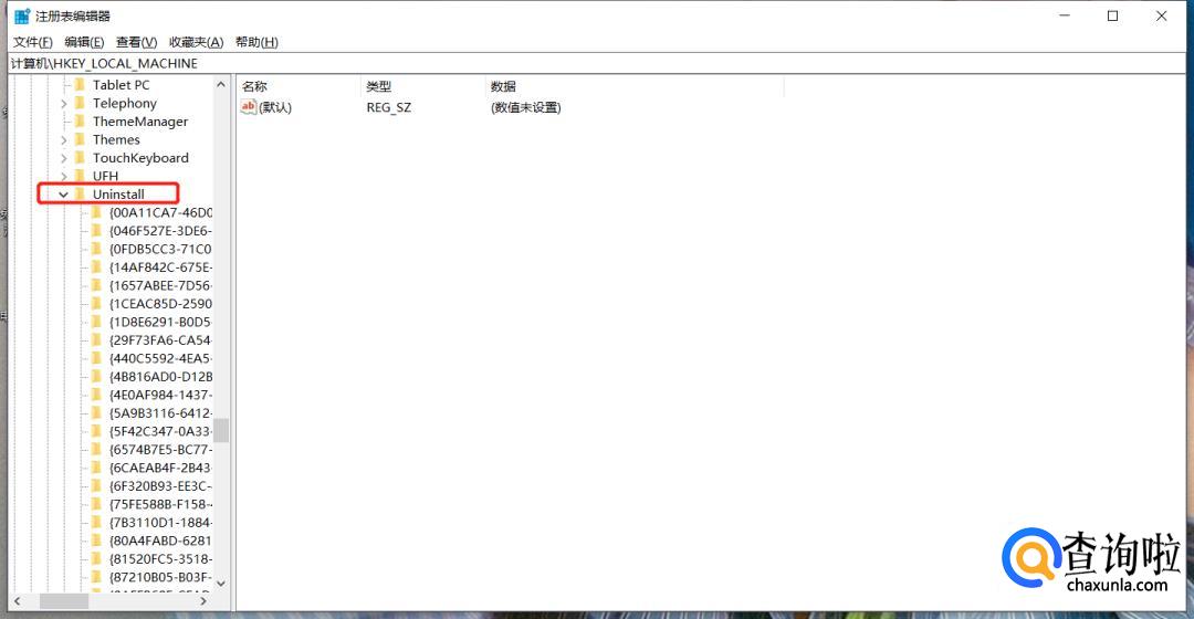 然后我们就进入了注册主界面。我们点击【HKEY_LOCAL_MACHINE】→【SOFTWARE】→【Microsoft】→【Windows】→【CurrenVersion】→【Uninstall】,如图所示。