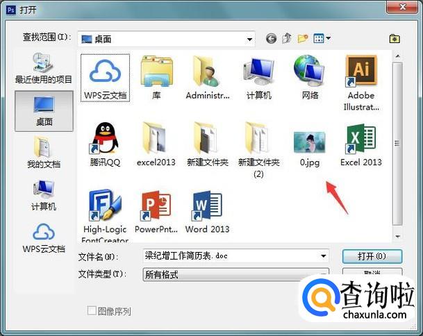 打开ps之后按下Ctrl+O键在弹出的对话框内找到我们需要处理的图片,如图所示: