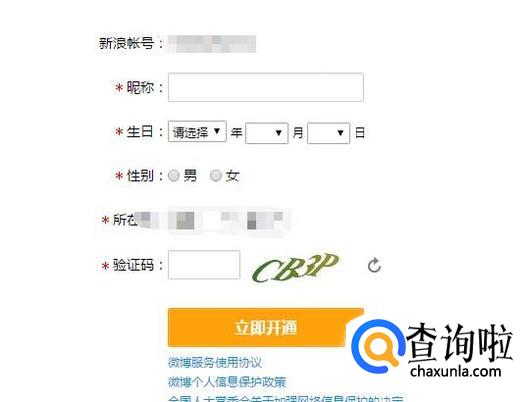 然后根据提示输入账号名称、昵称、性别、所在地,再验证即可,如下图所示: