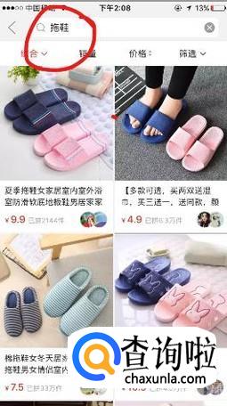 小编这里以拖鞋为例,在搜索框内输入“拖鞋”以后,查找符合自己需求的商品,然后点击进入店铺。