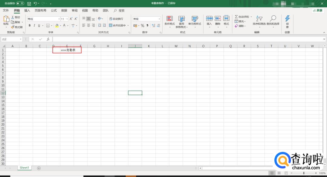 首先从电脑里打开EXCEL空白表格,在第一行任意位置的单元格内填入考勤表名称:
