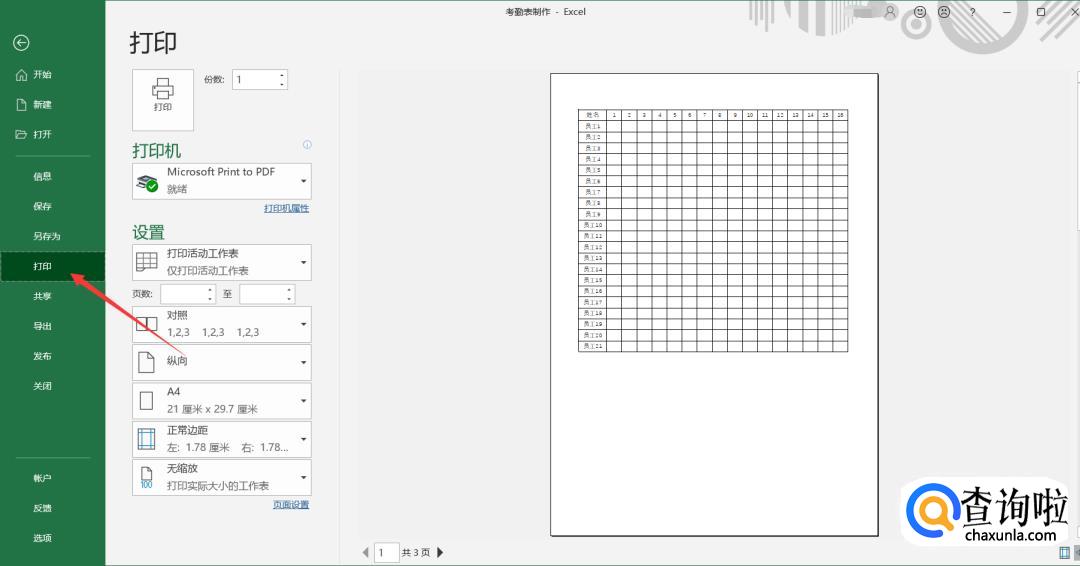 点击左上角的【文件】按钮,再点击【打印】进行预览,如果表格不好看还可以在进行修改: