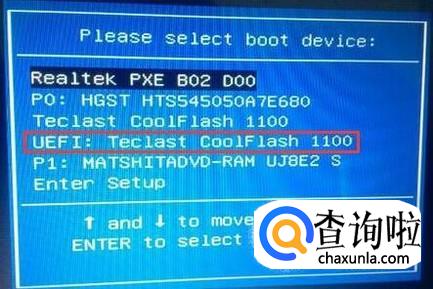 将制作好的大白菜uefi版u盘插入电脑,重启,按下启动热键进入u盘启动项选择窗口,选择以“uefi”开头的u盘选项,按回车,如下图所示: