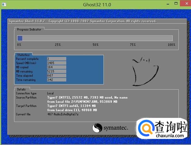 稍后进入ghos win7系统还原过程,如下图所示: