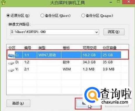 选择c盘为安装盘,点击确定,如下图所示: