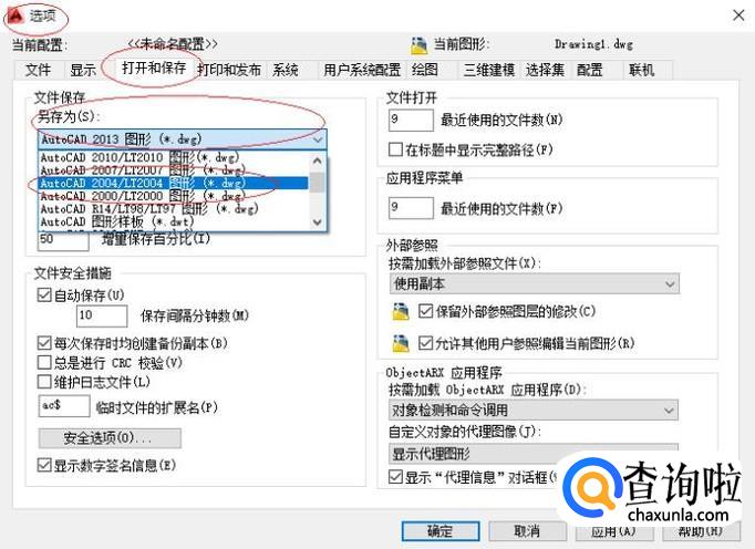 弹出下拉列表,选择"AutoCAD 2004/LT2004图形"项。