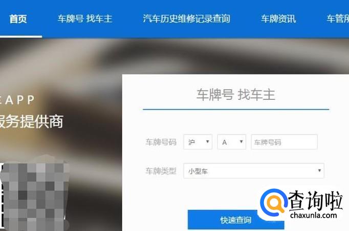 打开该软件,进入主页面,根据提示输入车牌号以及车牌类型,点击“快速查询”即可查询到车主信息。