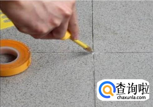 首先,先把瓷砖缝隙清理干净,清理好后,在瓷砖缝隙边缘贴上美工胶带。注意要用壁纸刀把胶带交叉的地方清理掉,露出瓷砖缝隙。