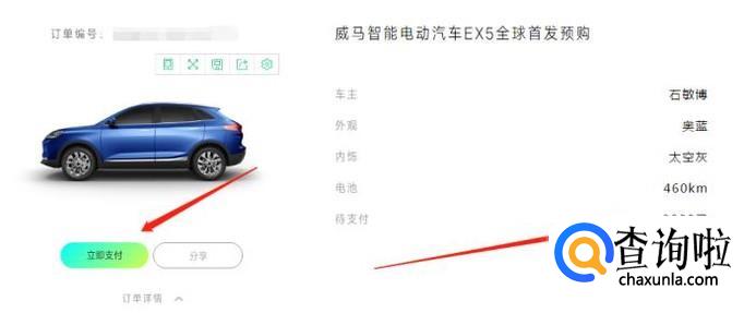 然后会跳转到一个订金支付页面,我们支付订金后预约就成功了。