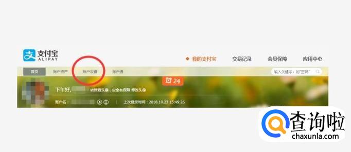 登录好之后,点击支付宝上方的“账户设置”,打开下一个页面。