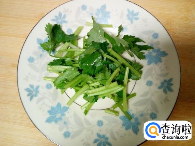 香菜用水清洗干净,控干水分,切成小段。葱,姜,切成末。