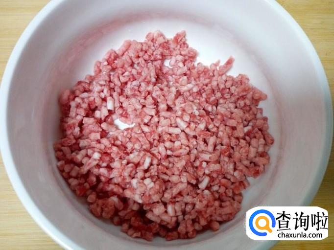 肉切成末,也可以购买现成的肉馅,我用的是购买现成的肉馅(用牛肉,猪肉都可,根据个人喜欢的口味)。