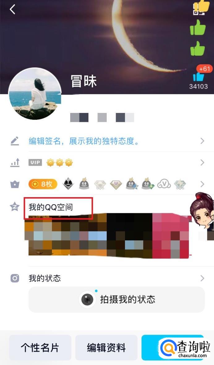进入个人页面,找到“我的QQ空间”点击打开。