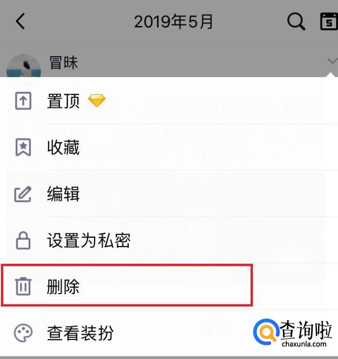 找到删除并点击就可以了,目前QQ还没有批量删除说说的功能。
