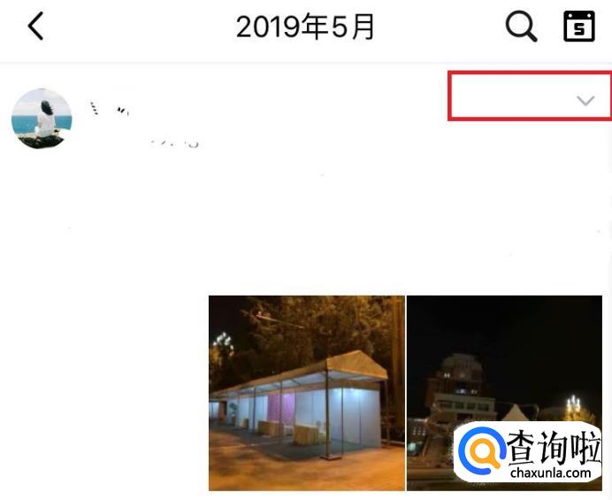 进入空间后,找到想要删除的说说,点击向下的三角形符号,如下图所示。