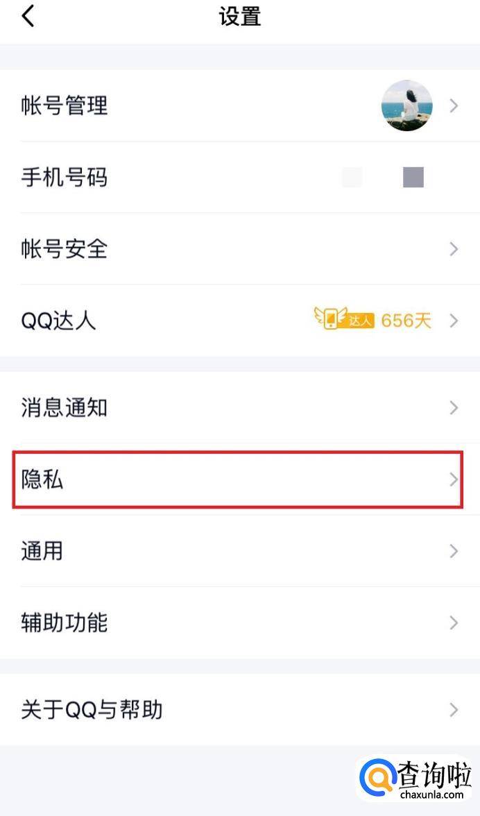 进入页面后,点击“隐私”。