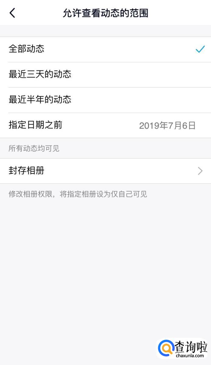 在这里可以根据自己的情况设置允许好友访问空间动态的时间。