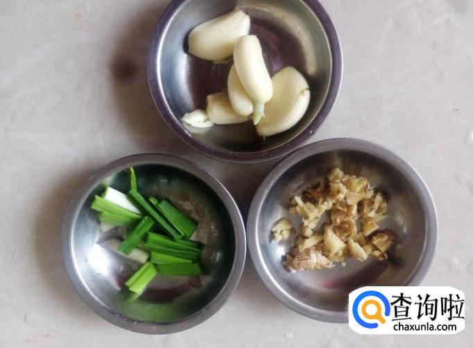 蒜米、姜蓉、青蒜准备好。