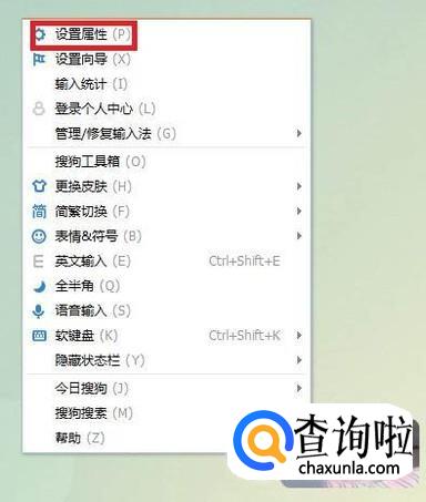 在搜狗输入法界面,点击右键,选择设置属性,如图所示