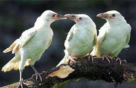 乌鸦真的全是黑的吗?不是!世界上确实存在着全身白色或身体部分是白色的乌鸦,例如,非洲的坦桑尼亚就有三种并非全黑的乌鸦;一种叫做斑驳鸦,身长40多厘米,颈项上有白色的圈,胸部是白色的羽毛;另一种叫白颈大渡鸦,颈部和背部都生长着月牙形的白毛,非常好看;还有一种叫斗篷白嘴 鸦,嘴是白色的。最令人惊奇的是:在日本发现了一只全身皆白的真正的白乌鸦!