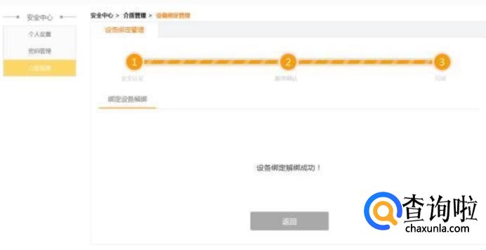 在设备绑定管理页面可查看当前绑定设备信息,选择“解绑”。