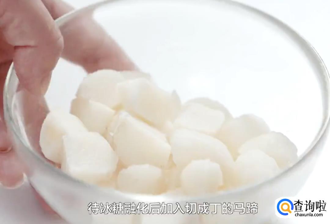 冰糖融化后加入切成丁的马蹄。