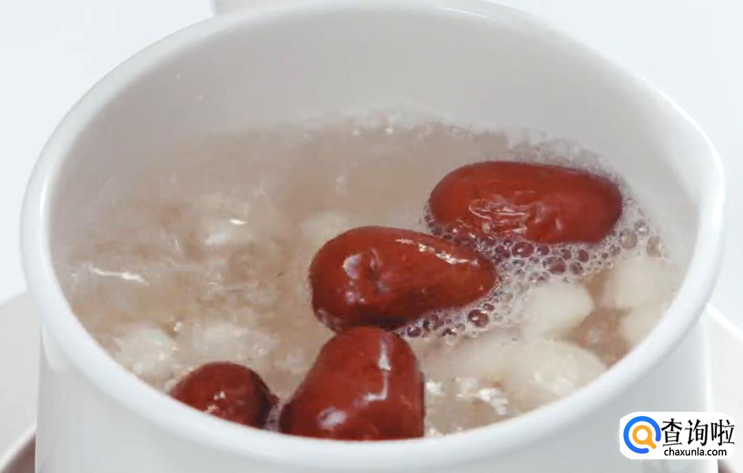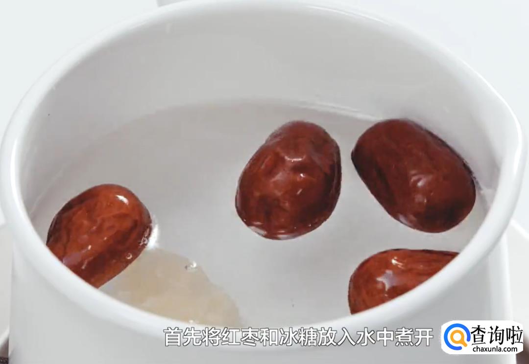 将红枣和冰糖放入水中煮开。