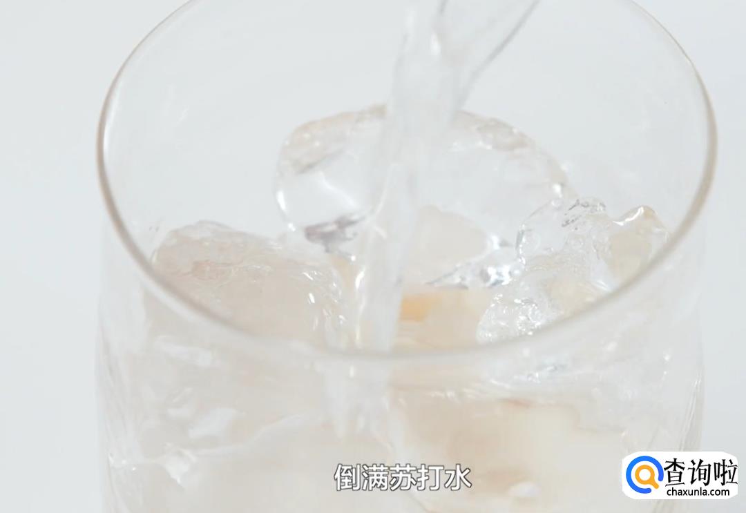 加入冰块后倒满苏打水。