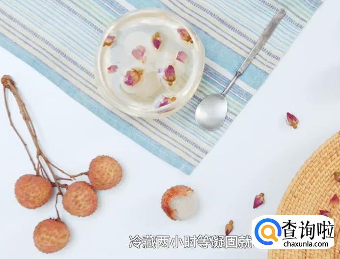 将荔枝肉放入后,冷藏2小时候后就凝固了,这样就做好了。