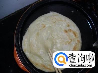 灌入鸡蛋液后,两面翻面,将两边烙成金黄色即可。
