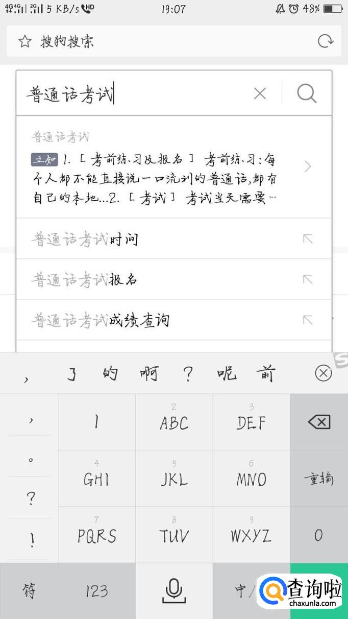 首先,随便打开一个浏览器,在搜索框中输入”普通话考试“然后就会弹出很多相应的内容,如:”普通话考试报名“、”普通话考试成绩查询“等