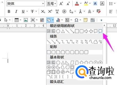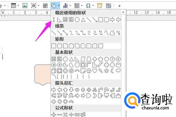 在极速写作2017界面上找到形状处,选箭头所指的图形。如图所示。