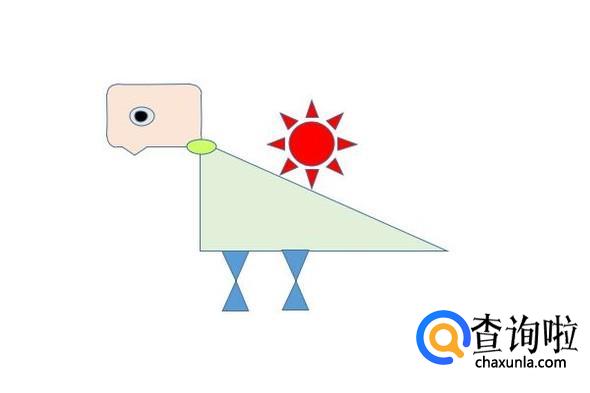在打开的图形中填充自己喜欢的颜色,并画出小恐龙的身体,再填充自己喜欢的颜色。如图所示。