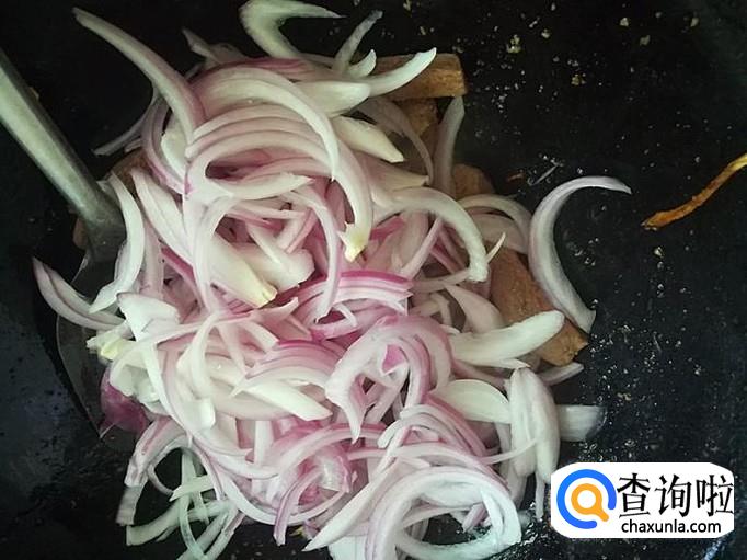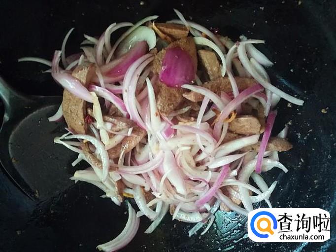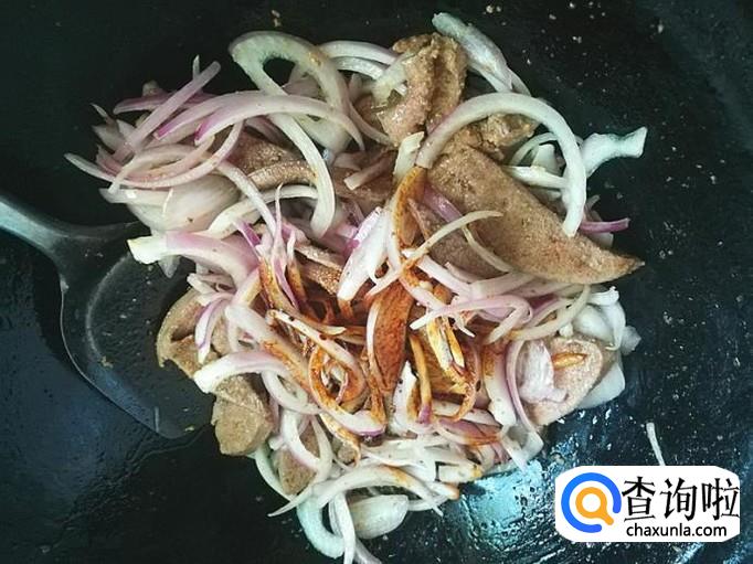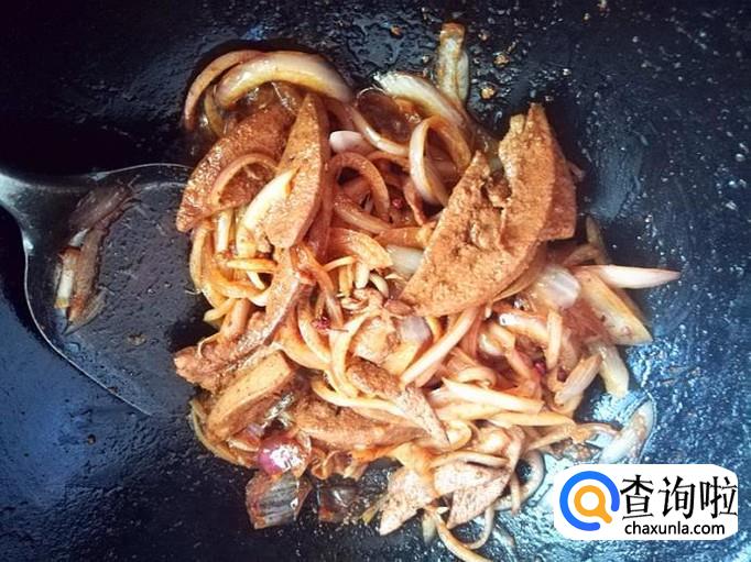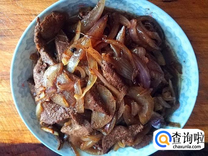 加入少许的味精搅均匀出锅,盘装,一盘营养又好吃的猪肝爆炒洋葱就做好了。