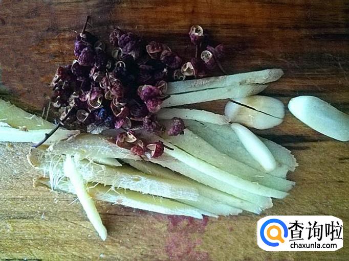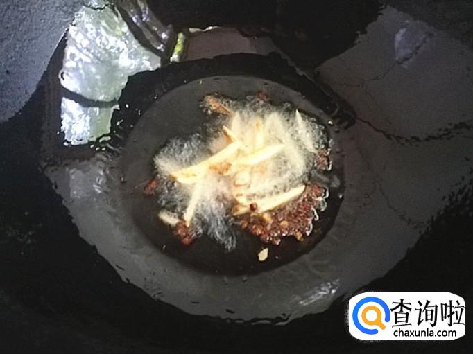 上炒菜锅,加入适量的植物油烧热,倒入准备好的生姜和花椒及蒜翻炒几下。