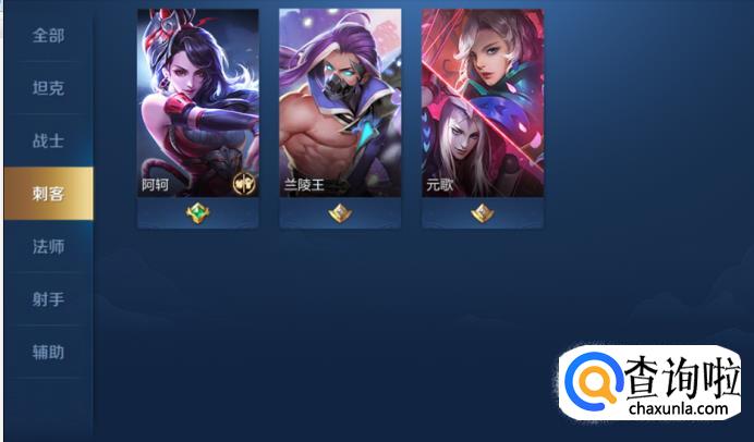 如果具有攻击力并且动作迅速灵活度大的,可以选择刺客类型作为本命英雄,如的兰陵王,阿珂等,如下图所示: