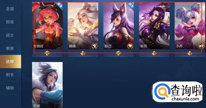 如果喜欢远处攻击性和辅助性的,可以选择法师类型的英雄为自己的本命英雄,如安琪拉,嫦娥、妲己等,如下图所示:
