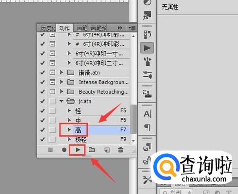 打开图片之后再在右侧的面板里找到动作选项,如图所示: