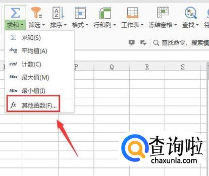 点击求和选项在其下拉菜单那里找到其他函数选项,如图所示:
